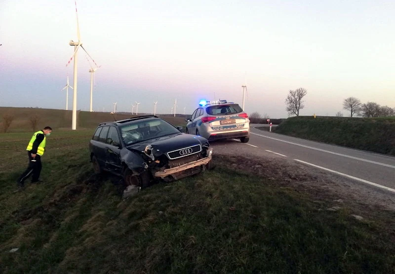 "Na miejsce zostali skierowani policjanci z drogówki. Ze wstępnych ustaleń pracujących na miejscu funkcjonariuszy wynikało, że kierujący najprawdopodobniej nie dostosował prędkości do panujących warunków na drodze, w wyniku czego na łuku drogi stracił panowanie nad audi i wypadł z drogi, uszkadzając trzy znaki drogowe" - dodał Paweł Łyko.