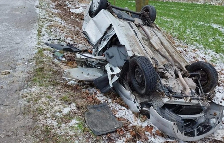 - Zjechał z drogi, uderzył w drzewo i dachował