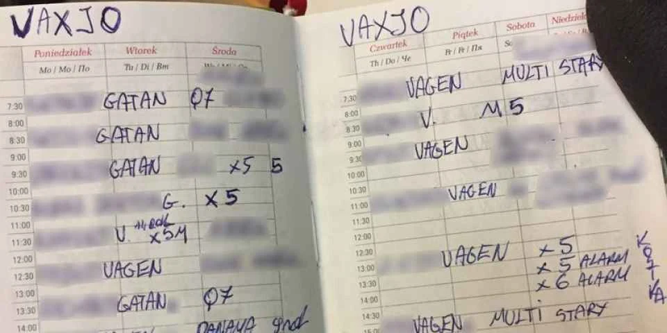 W kalendarzu jednego z zatrzymanych mężczyzn znaleziono notatki dotyczące 70 właścicieli luksusowych pojazdów: model auta, adres i opis systemu alarmowego, chroniącego garaż.