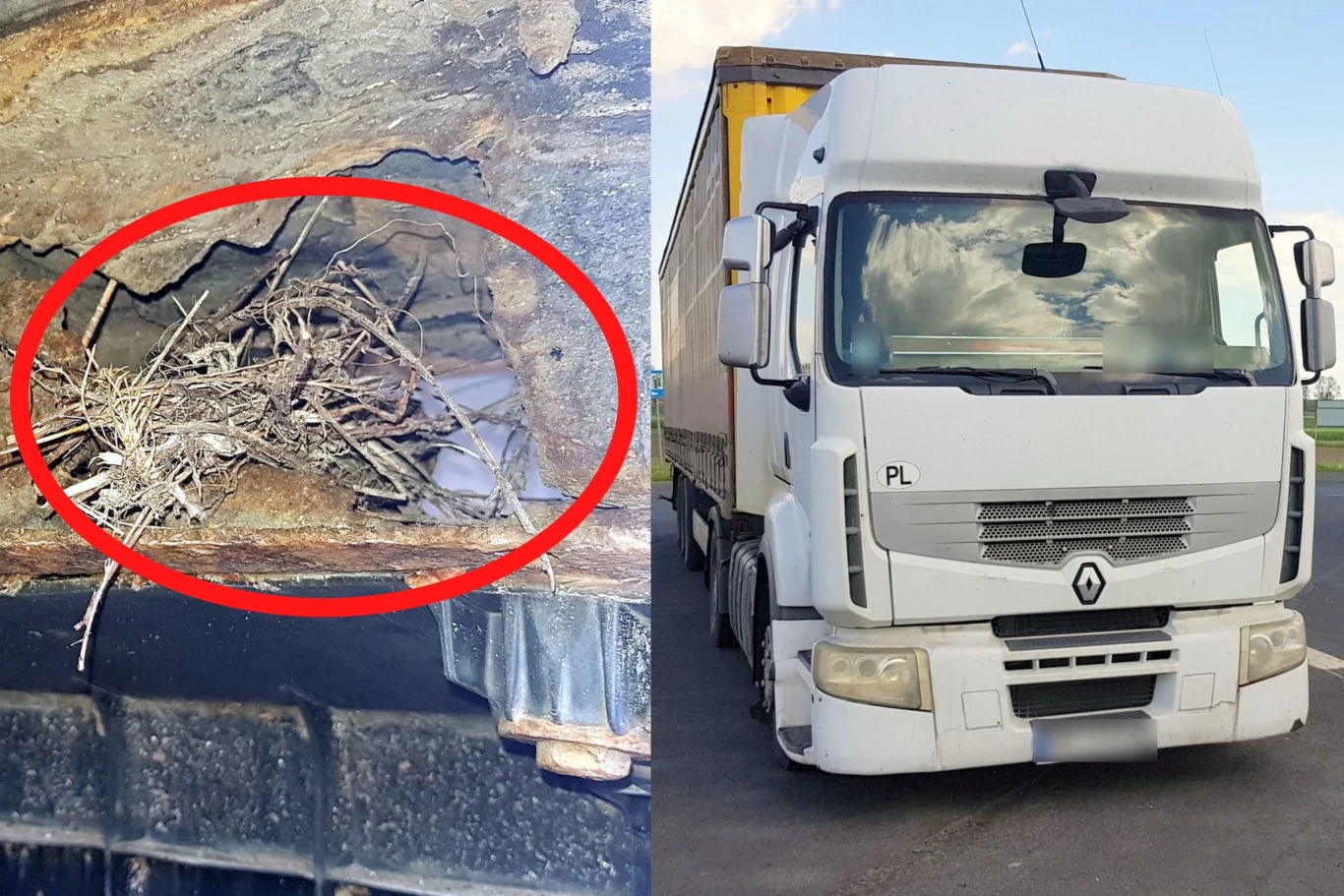 Ptasie gniazdo w skorodowanej naczepie. Wysokie kary i zakaz dalszej jazdy