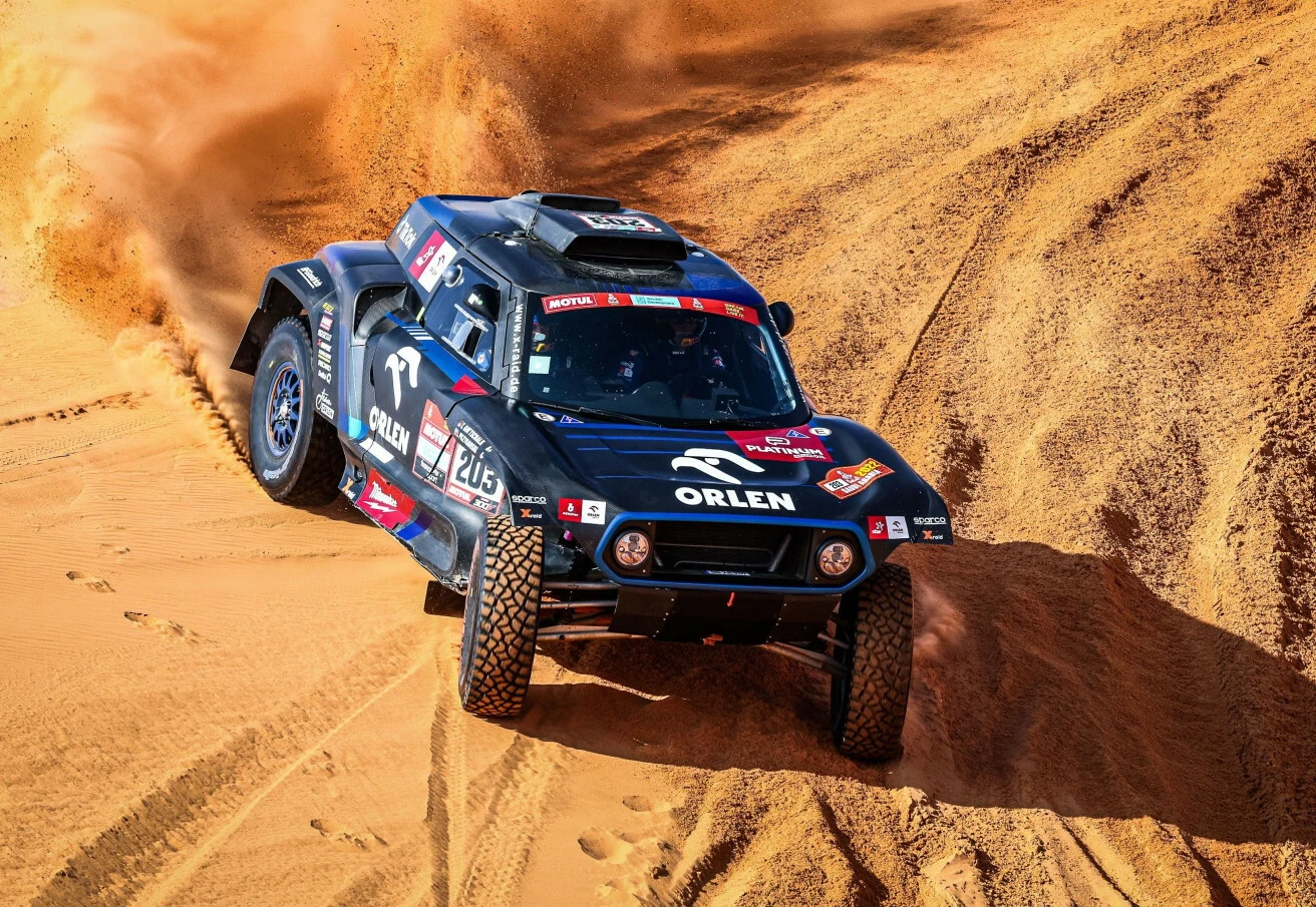 - Uważam, że to był nasz bardzo dobry etap. Długi, 400-kilometrowy odcinek specjalny. Pierwsze 200 kilometrów to wydmy, potem trochę twardego. Na wydmach nasz samochód z napędem na tylną oś trochę wolniej jechał, bo nie miał siły się odpychać jak 4x4, ale nadgoniliśmy w drugiej części, gdy było bardziej twardo - relacjonował.