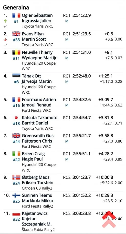 "Weekend był pełen wydarzeń, zwłaszcza dzisiejszego poranka. Spoglądamy już do przodu, mam nadzieję, że przed nami kolejne starty. Nie kryję, że chcę w tym roku walczyć o ósmy tytuł mistrzowski" - powiedział na mecie Ogier, który długo nie dowierzał, że jednak wygrał z Evansem. Brytyjczyk na mecie nie tryskał humorem.