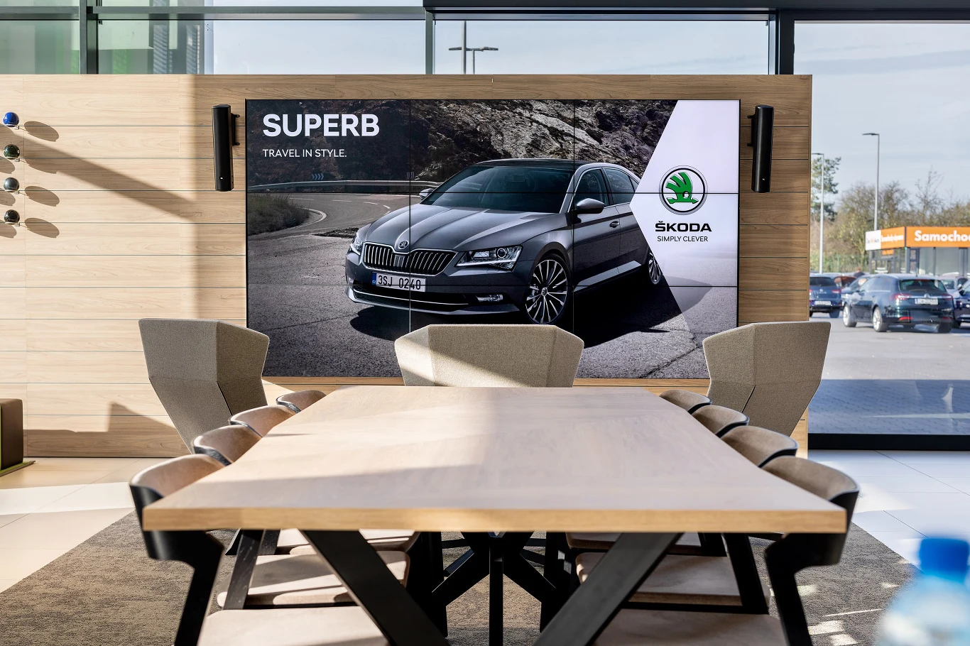 Showroom Skoda jest częścią salonu Motorpol Wrocław. Znajdują się tam najnowsze rozwiązania cyfrowe oraz narzędzia pozwalające w łatwy sposób zapoznać się z ofertą marki oraz funkcjonalnościami poszczególnych modeli. Wykorzystuje się do tego multimedialną ścianę wideo, z którą można łączyć się za pomocą iPadów prezentując klientom możliwości samochodów i działanie systemów bezpieczeństwa oraz dokonać konfiguracji wybranego modelu. Dostępny jest też multimedialny stół dotykowy, który również służy poznaniu poszczególnych funkcji i możliwości modeli, specjalne multimedialne standy informacyjne przy samochodach oraz iPady ze specjalną aplikacją, która przez cały proces zakupowy towarzyszy klientowi i jego doradcy.
