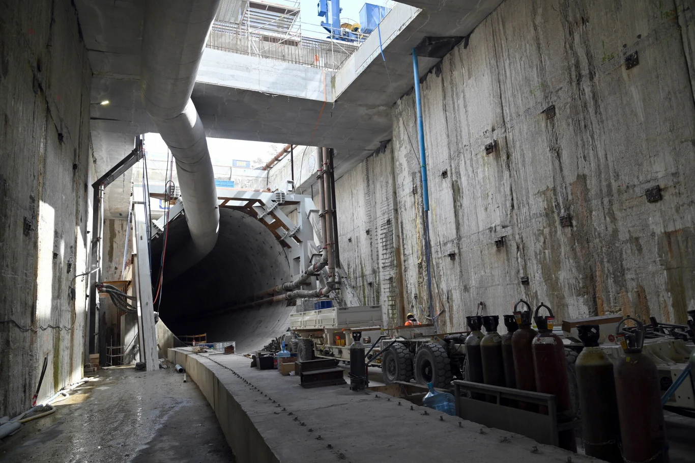 Dodała, że prace prowadzone są także w części drogowej. Przed wjazdem do tunelu budowany jest m.in. plac manewrowy, który będzie służył kierowcom w przypadku akcji służb. Powstanie także centrum obsługi tunelu.