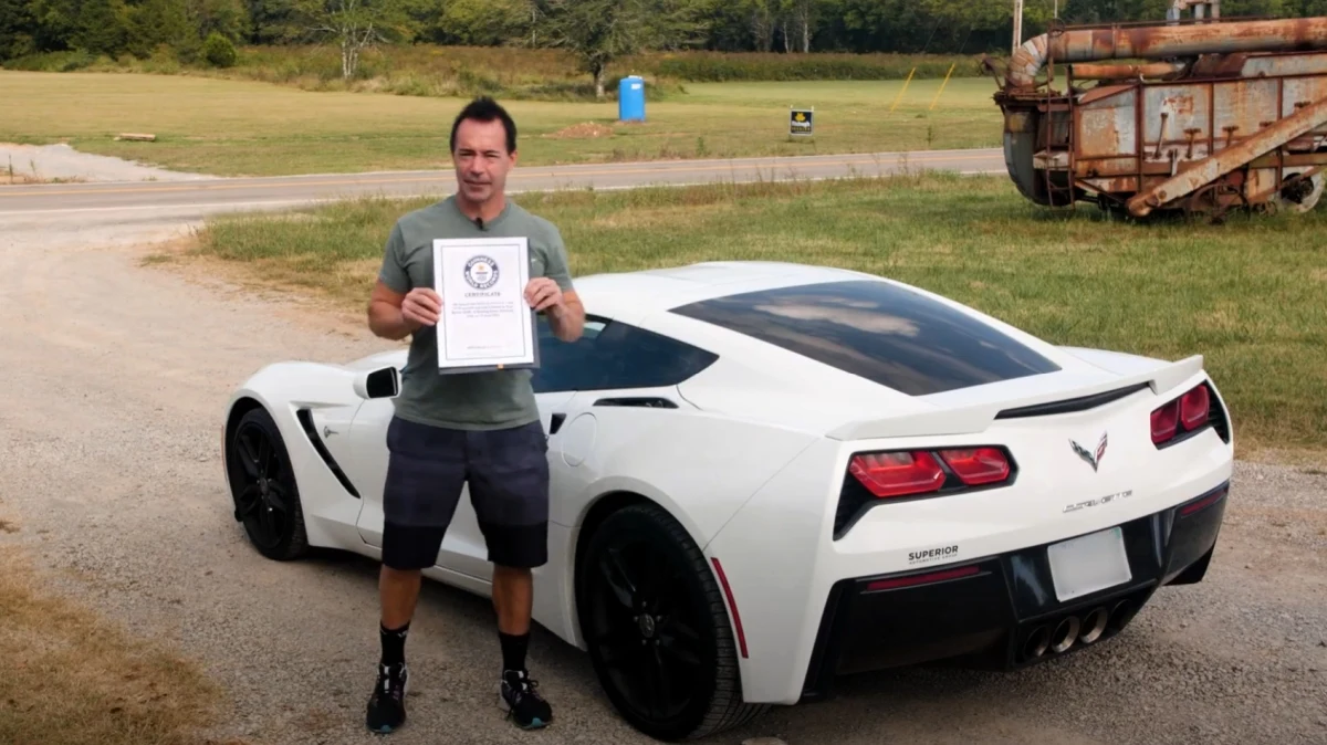 Za kierownicą białego Chevroleta Corvette C7 Scot Burner przejechał wspomnianą odległość ze średnią prędkością wynoszącą 86 kilometrów na godzinę, co dało mu czas 1 minuty, 15 sekund i 18 setnych sekundy. Jak sam powiedział w wywiadzie dla telewizji Fox News - jego technika jest prosta: odwraca się z prawą ręką na siedzeniu pasażera i kieruje lewą. Swój tor jazdy koryguje spoglądając w tylną szybę.