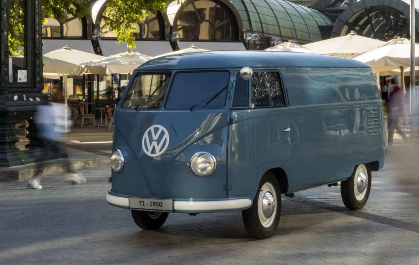 Dokładnie 70 lat temu z linii produkcyjnej zakładu w Wolfsburgu zjechał van pierwszej generacji (T1) w kolorze gołębiego błękitu i podwoziem o numerze 20-1880. Trafił on do fabryki w Hildesheim i miał być przeznaczony do użytku komercyjnego, by służyć do transportu towarów z punktu A do B. Potem jednak zupełnie zniknął, błąkając się po prywatnych kolekcjach, aby ponownie pojawić się na początku lat 90. Przeszedł gruntowny remont i po całkowitej renowacji w 2014 roku wzbogacił kolekcję Pojazdów Klasycznych Volkswagen Samochody Użytkowe. Świętując 70. rocznicę jego powstania cofamy się w czasie, by poznać historię pierwszego egzemplarza Bullego.