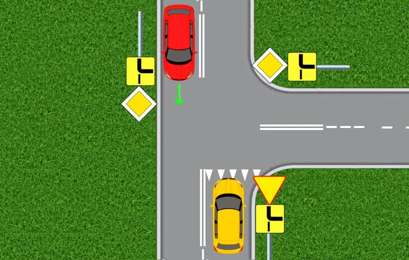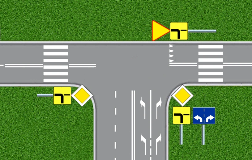 Ludzie! Czy źródłem wiedzy i wykładnią prawa mają być wasze jednostkowe zdarzenia, bo egzaminator czegoś nie zauważył? Czy to jest podstawa do wypowiadania takich autorytatywnych opinii? To wszystko są konfabulacje, wyssane z palca opinie. Nie ma czegoś takiego, jak jazda "po swoim torze" na drodze z pierwszeństwem. Kwestia pierwszeństwa nie ma nic wspólnego ze zmianą kierunku jazdy! Wystarczy na chwilę uruchomić swoje szare komórki. Spójrzcie na rysunek: