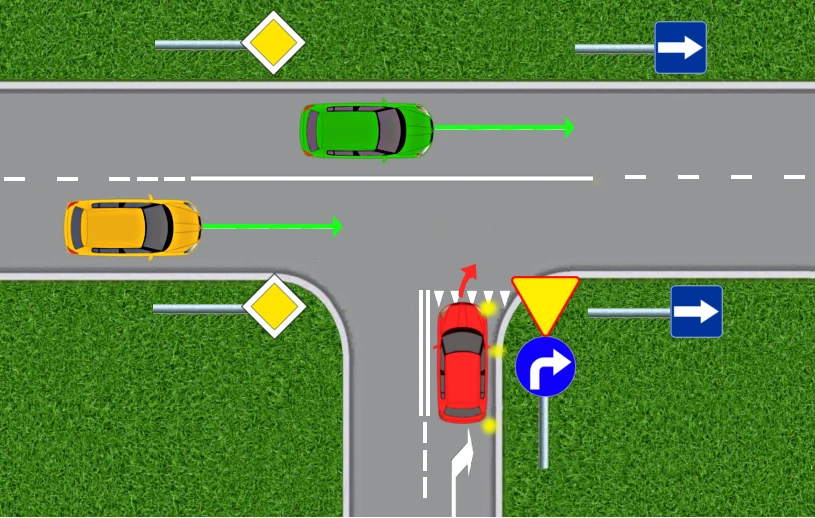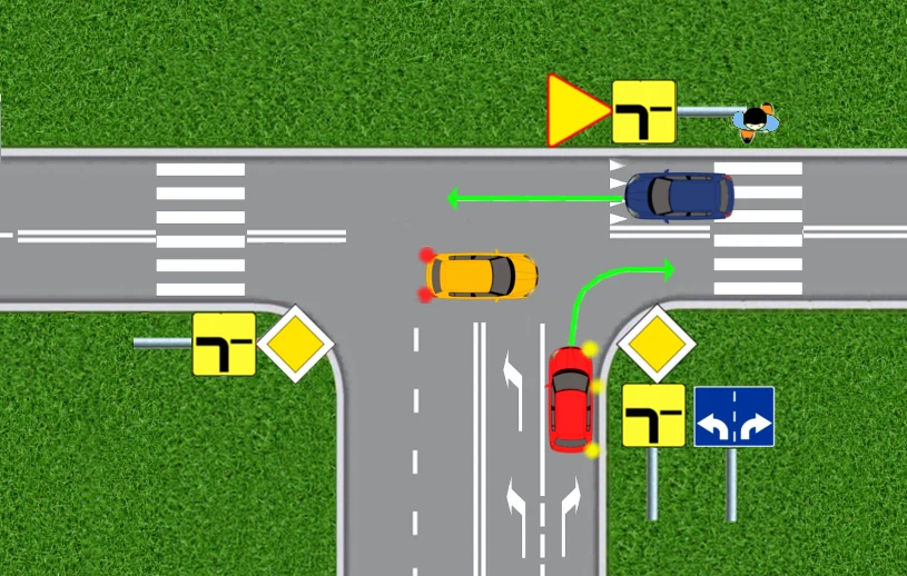 Zupełnie inna sytuacja jest wtedy, gdy kierujący pojazdem czerwonym jasno sygnalizuje swoje zamiary: