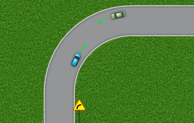 W tym przypadku droga biegnie po łuku do skrzyżowania i nie ma możliwości pojechania w inny sposób (nie rozważamy wypadnięcia z drogi).