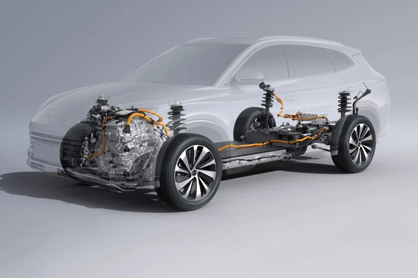 Jednak tym, co robi największe wrażenie, jest zasięg tego samochodu. BYD stosuje już technologię DM-i w modelach Qin L i Seal 06. Wykorzystuje w nich swój silnik o pojemności 1,5 litra, mocy 100 KM i 215-konny silnik elektryczny o oznaczeniu EHS160. W zależności od wersji, łączy je z baterią o pojemności 10,1, albo 15,9 kWh - oczywiście mowa o ładowanych z gniazdka wariantach plug-in. Według danych technicznych, taka konfiguracja pozwala na uzyskanie średniego zużycia paliwa 2,9 l/100 km (wg normy NEDC) i zużycia energii 10,7 kWh na 100 km (wg normy CLTC). Łączony zasięg napędu hybrydowego to według chińskiej normy CLTC aż 2100 km.