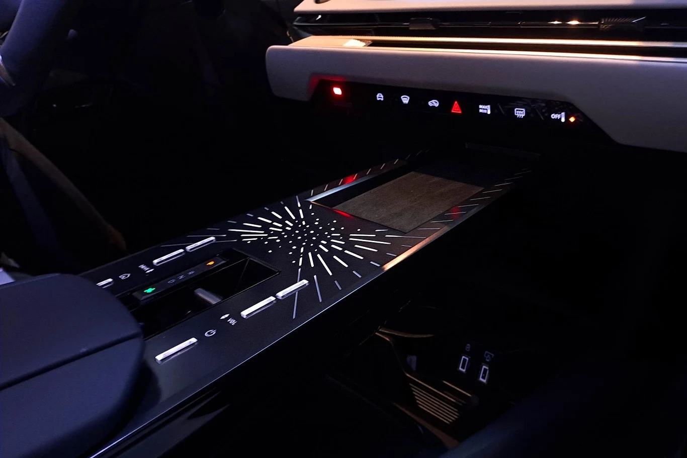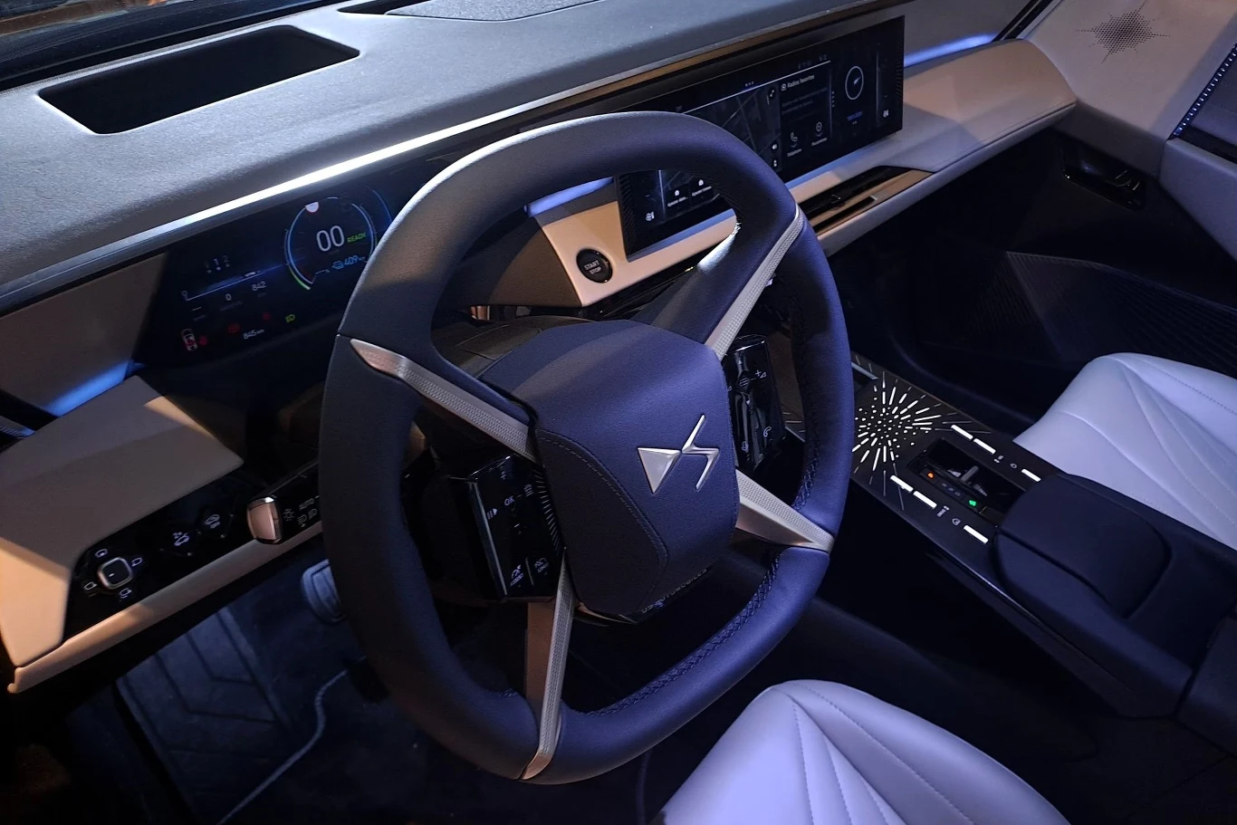 W DS N8 nie postawiono jednak na całkowitą digitalizację. Fizyczne przyciski znajdziemy np. na konsoli środkowej (tryby jazdy, regulacja głośności). Ta z kolei ma dwa poziomy. Górna część, na której znajduje się choćby dźwignia zmiany biegów, sprawia wrażenie zawieszonej w powietrzu. Pod nią znajdziemy natomiast sporych rozmiarów schowek.