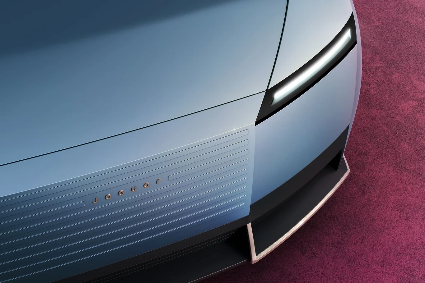 Z przodu znajdziemy płaski, pionowy panel z nowym napisem "Jaguar" i wąskie reflektory. Ciekawy jest również tył z poziomymi liniami skrywającymi światła. Innym interesującym rozwiązaniem są prostokątne panele przy przednich kołach. Po ich odchyleniu ukazują się skierowane do tyłu kamery. Ma to zapewne pomóc w manewrowaniu tym autem. Auto stoi na 23-calowych kołach. Jak deklarują przedstawiciele Jaguara, punktem wyjścia dla stworzenia tego samochodu, zarówno pod kątem projektowania, jak i inżynierii, była czysta kartka papieru. I to zdecydowanie widać.